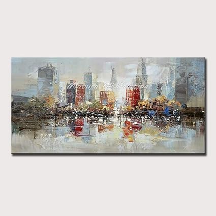 YHYSJ Peint à la Main New York Building Image Résumé Moderne Palette Couteau Peinture à l'huile sur Toile Salon Mur Art Décor MT161541 110x220cm Unframe: Amazon.fr: Cuisine & Maison
