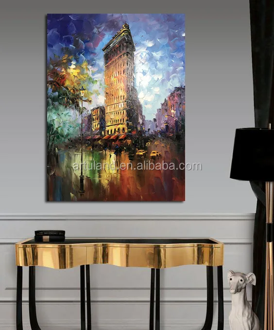Célèbre New York Flatiron Building Art Mural Couteau Peinture À L'huile - Buy Peinture À L'huile De Couteau,Peinture À L'huile De Bâtiment De Flatiron,Peinture À L'huile De Bâtiment De Flatiron De New